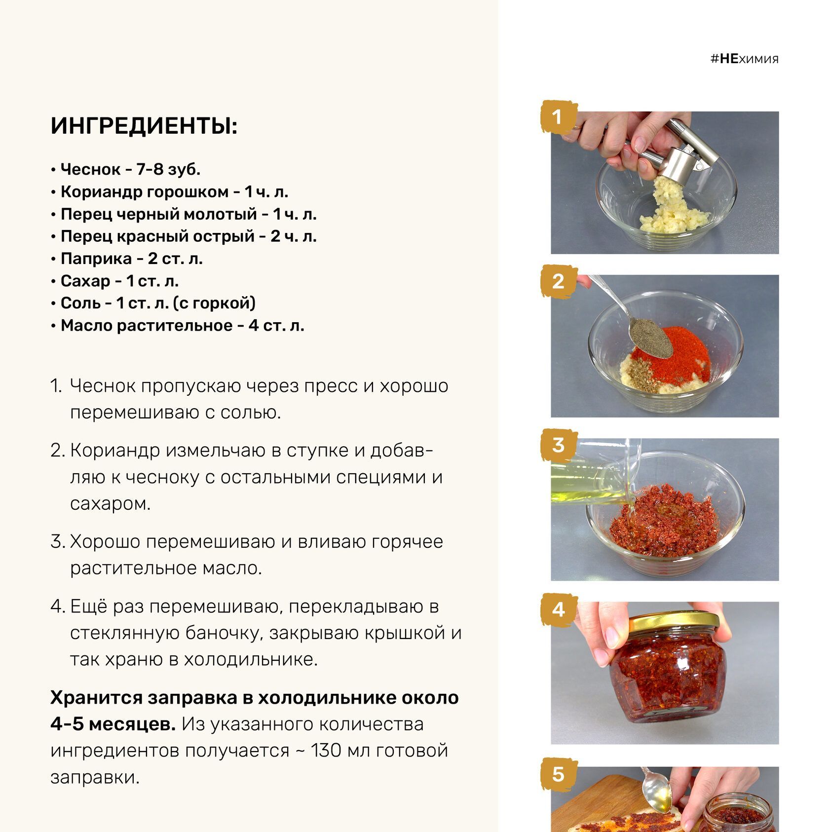 В домашних приправах нет никаких консервантов и усилителей вкуса, нет ненужной муки, крахмала и сахара - только натуральные ингредиенты!