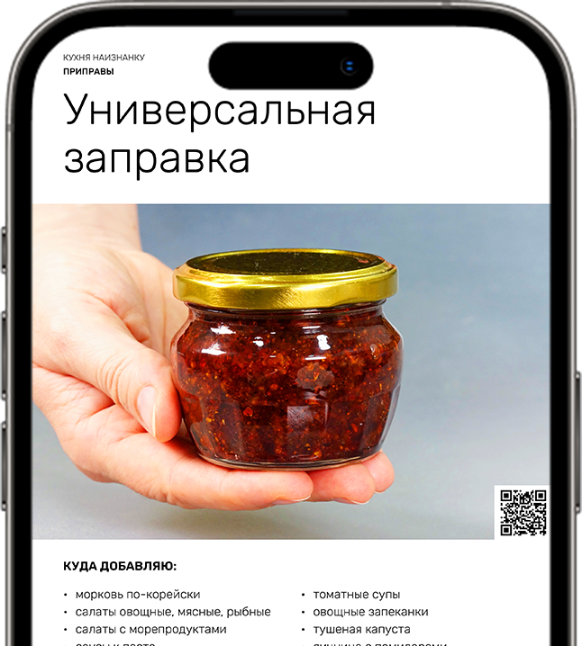 QR-КОД, ПРИ НАВЕДЕНИИ НА КОТОРЫЙ, ВЫ ПОПАДАЕТЕ НА ВИДЕО ПРИГОТОВЛЕНИЯ КОНКРЕТНОЙ ПРИПРАВЫ